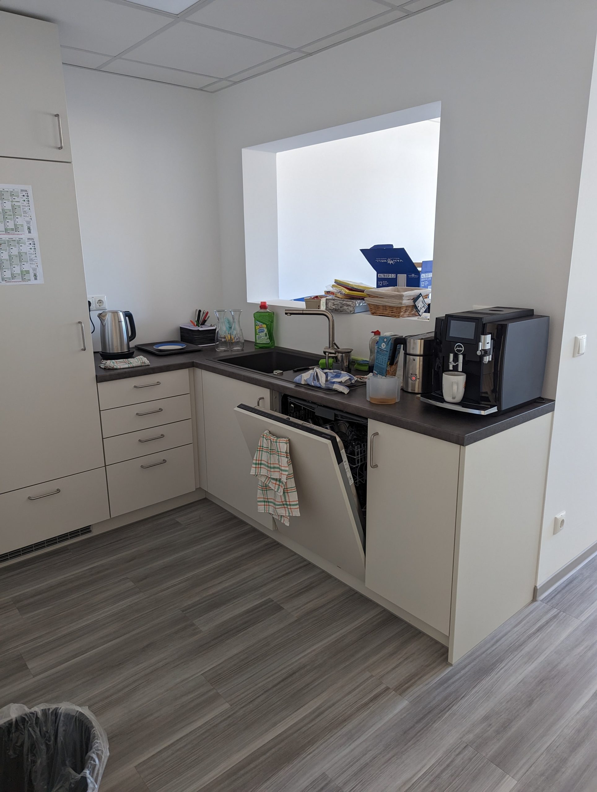 Wir verfügen über eine eigene barrierefreie Toilette nach DIN, haben eine kleine Teeküche und einen Schulungsraum für bis zu ca. 30 Personen.